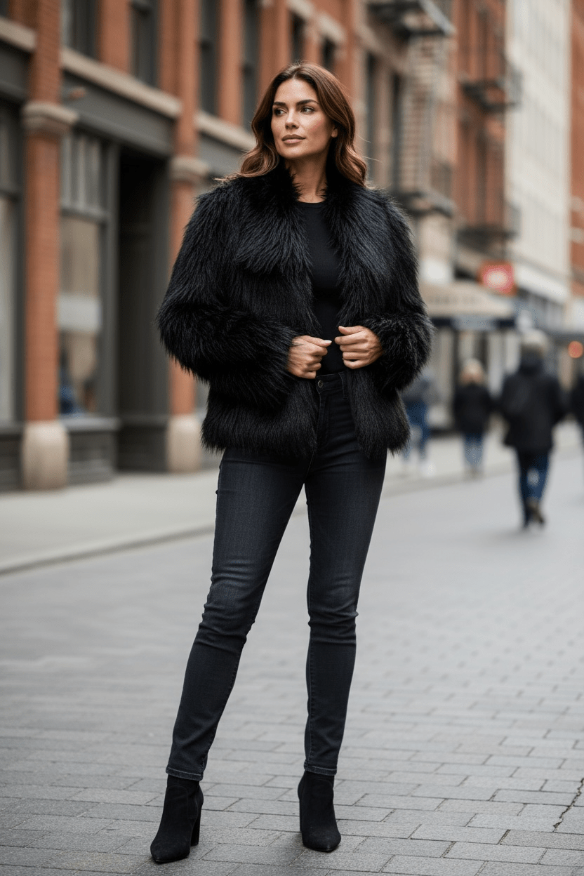 Abrigo pelo corto negro
