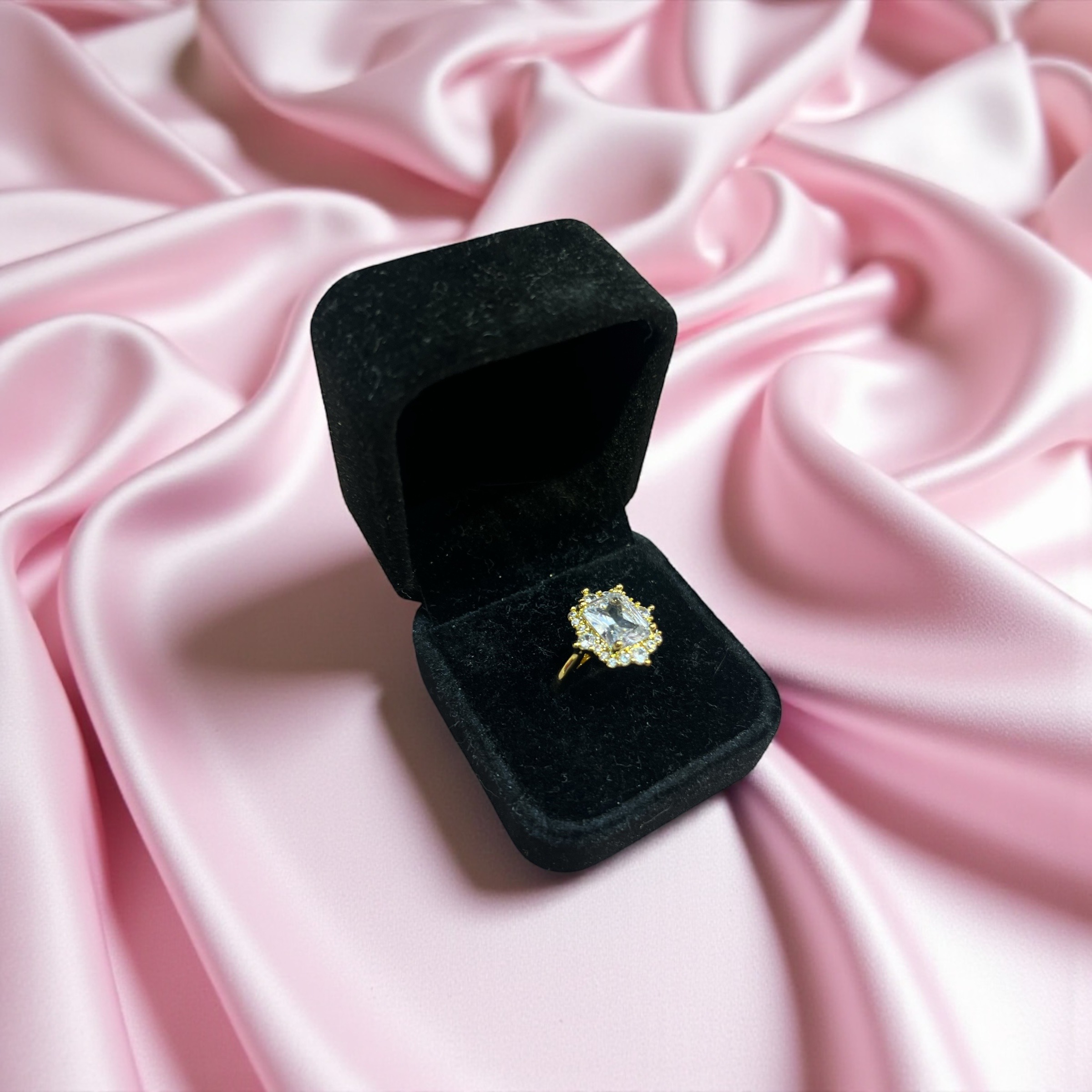 Precioso nuestro anillo inspirado en el anillo Georgina, brillante y elegante. Viene con su cofre perfecto para regalar, o que mejor que regalártelo a ti misma, ¡Brillarás! ¿Cómo elegir tu talla? te explicamos: envuelve una cuerda a tu dedo y mide la longitud. Talla S: 15/16mm // Talla M: 17/18mm // Talla L: 19/20mm. Antialérgico. También disponible en plata.